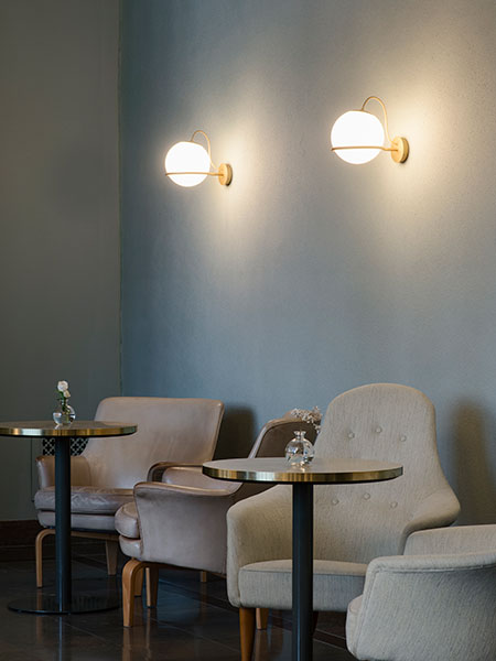 kattokruunuilla ja saman valaisinperheen seinävalaisimilla. Valaisimien