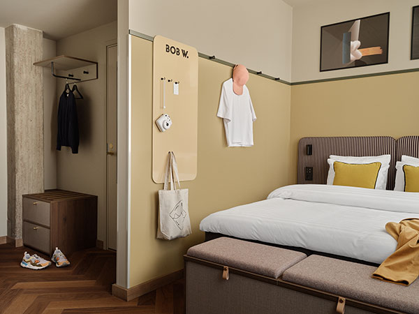Helsinkiläislähtöinen Bob W on Euroopan nopeimmin kasvava teknologiapohjainen majoitusbrändi, jonka huoneistohotellit tarjoavat uuden sukupolven matkailijoille kodinomaisen majoituskokemuksen hotellitason laadulla, teknologiapohjaisella asiakaskokemuksella ja paikallisilla yksityiskohdilla maustettuna. Nyt ovensa avaavan Kampin kohteen rohkea sisustus yhdistää rakennuksen 70-luvun estetiikan moderniin suomalaiseen muotoiluun. Kohteen sisutusarkkitehtuurin on suunnitellut palkittu helsinkiläinen Suunnittelutoimisto KOKO3.