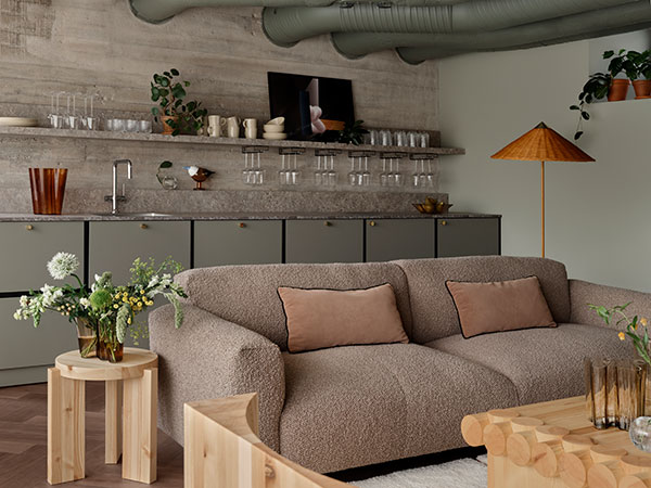 “Bob W:n asiakkaat haluavat aitoja paikallisia kokemuksia ja tarinoita. Kampin sisustukseen ammensimme inspiraatiota rakennuksen alkuperästä sekä ympäröivästä kaupunkimaisemasta: urbaanit betonielementit on yhdistetty lämpimään väripalettiin ja pehmeyteen. Lopputulos on yhtä aikaa rouhea ja kodikas – kuten Kamppikin”, kuvailee KOKO3:n luova johtaja Mari Relander.