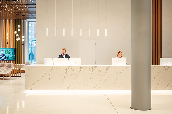 "Oli hienoa päästä kehittämään maailmalla suosittua kampus-ajatusta K-ryhmän tarpeisiin. K-kampuksen aulatila ei ole pelkkä läpikulkupaikka vaan valtavan rakennuksen monimuotoinen ja inspiroiva sydäntila, jossa asiakkaatkin pääsevät tutustumaan Keskon toimialoihin ruuasta autokauppaan. Tila on suunniteltu käyttäjän toivomuksesta muuntojoustavaksi siten, että siellä pystyy järjestämään isompiakin tilaisuuksia niin henkilökunnalle kuin asiakkaillekin. Yrityksen arvomaailmaan sopii, että huonekalu- ja materiaalivalinnoissa on pyritty kotimaisuuteen ja pitkä-ikäisyyteen," kertoo sisustuksesta vastannut Samuli Hintikka dSign Vertti Kivi & Co:sta.