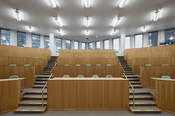 Peruskorjauksessa luentosalien ja hienon juhlasalin pinnat palautettiin