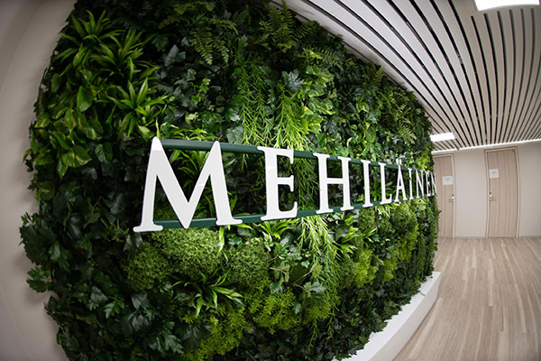 ”Toteutimme esimerkiksi Mehiläisen viherseinät mittojen mukaan, kuten muutkin viherseinät pääasiassa tehdään. Näissä on lisänä erillinen kirjainlogo, joka tulee hienosti esille vihreää taustaa vasten.”