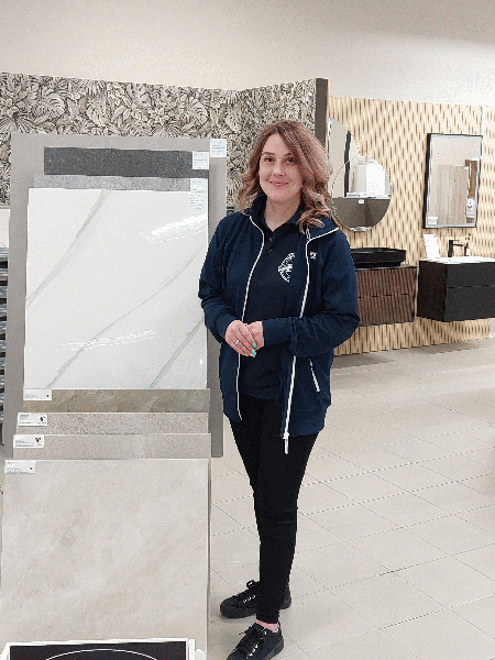 Laattapiste-Pukkila Oy:n erikoisliikemyyjä Elisa Mansikkamäki.