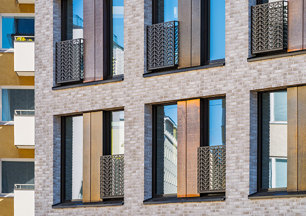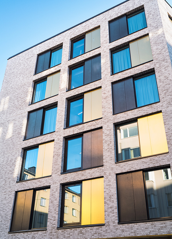”Pääjulkisivumateriaalina kaikissa taloissa on tiili. Ikkunanpielissä on käytetty eri kuparipintoja. Kupariosien valmistuksesta ja asennuksesta vastasi Teräselementti Oy, joka on myös Aurubiksen pitkäaikainen yhteistyökumppani”, Susi mainitsee.