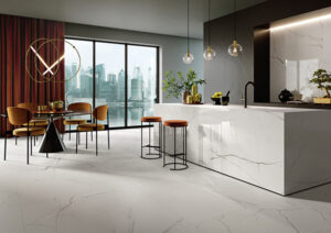 Suurlaatat ovat monipuolinen sisustustuote, jolla voidaan toteuttaa näyttäviä sisustuskokonaisuuksia sisälle ja ulos. Saumattomat suurlaatat luovat tilaan rauhallisen, harmonisen tunnelman. Materiaalina laatat