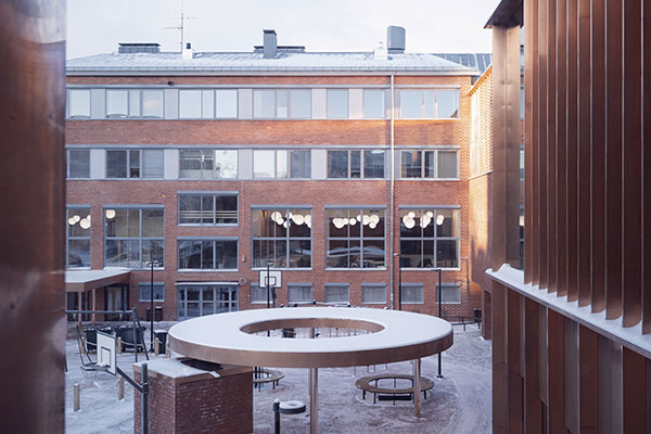 ”Kampuksella perinteiset koulun tilat esikoulusta lukioon asettuvat osaksi yhteistä, elävää oppimisympäristöä. Kansainvälistä näkökulmaa tuo IB-lukio”, jatkaa projektiarkkitehti ja rakennussuunnittelija Katariina Knuuti JKMM Arkkitehdeiltä.