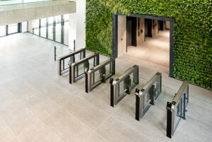 Modernissa henkilöliikenteen kulunvalvonnan sensoriportissa yhdistyvät huipputeknologia ja sulavalinjainen muotoilu. Portin LED-valaistus ohjaa kulkua ja ilmentää yrityksen brändivärejä. Sensoriportit edustavat sisätilojen henkilöliikenteen