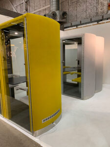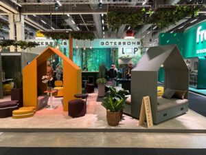 Äänieristettyjä koppeja valmistava Taiga Concept esitteli Tukholman Huonekalumessuilla uudistettuja työtilojaan. Kopit, kuten myös koko messuosasto henkivät pohjoisen luontoa, ja etenkin puiset