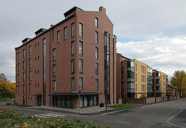 Tiilirakennuskokonaisuuksia täydennettäessä uusi rakennus
