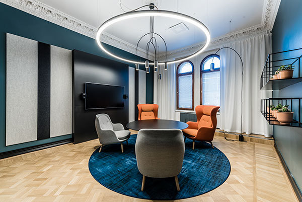 ”Tässä projektissa haaste oli löytää oikeat keinot, joilla voidaan yhdistää olemassa oleva ainutlaatuinen, vuonna 1898 rakennettu tila uuden toimitilan vaatimuksiin, sekä Vainu-brändin ilmeeseen. Asiakkaan toiveet olivat edustava, mutta rento ja persoonallinen tila, joka tukee yrityksen arvoja ja kestää aikaa. Tiivis yhteistyö asiakkaan kanssa auttoi ymmärtämään Vainun yrityskulttuuria ja toimintatapoja. Sen jälkeen yrityksen persoonallisuuden heijastaminen sisustussuunnittelussa tapahtui luontevasti. Rohkeat mutta harkitut värit, rennot mutta funktionaaliset kalusteet, tehokas mutta samalla esteettinen ja fiksu valaistus olivat keinot, joilla saimme rakennettua tyylikkäästi tasapainoa. Tilan avarat puitteet antoivat mahdollisuuden suunnitella sekä funktionaalisia että elämyksellisiä tiloja, joiden tarkoitus oli antaa henkilöstölle mahdollisuuden tuntea olonsa onnelliseksi ja arvostetuksi sekä työskennellä tuottavasti. Erityyppiset ja erikokoiset neuvotteluhuoneet, muunneltava kokoustila huipputekniikalla varustettuna, hiljaiset työhuoneet ja puhelinkopit sekä avarat avotilat yhdistettynä aukoilla näyttävään lounge-tilaan, on suunniteltu tuomaan sekä henkilökunnalle että Vainun asiakkaille miellyttävä ja inspiroiva kokemus”, kertoo Kokema Designin Sabina Dontcheff.