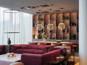 Kivivillapohjaisen Rockfon Color-all® -akustiikkaratkaisun vivahteikkailla sävyillä voi luoda erilaisia tunnelmia klassisen hienostuneesta aina dramaattiseen tai kodikkaaseen. Suljetussa kierrossa kierrätettävän tuotteen akustiset