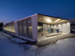 Puistopaviljonkimainen Espoon Matinkylän uimahalli suunniteltiin sekä käyttötarkoituksen että kaupunkisuunnittelun ja -maiseman ehdoilla. Esteettömyys ja ekologisuus ohjasivat suunnittelua ja toteutusta. Kohdetiedot: Matinkylän