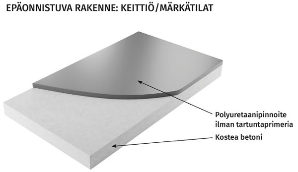 Polyuretaani vaatii betonin RH:n 80–85 %, sillä tätä korkeammassa