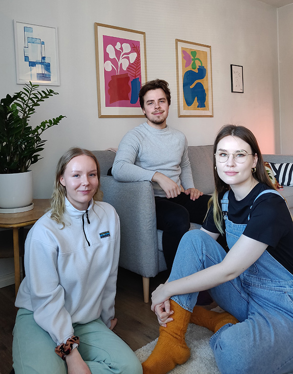 Voittajat julkistettiin tällä kertaa Julkisivuwebinaarissa. Tässä voittajatyöryhmä yhteisessä potretissa vasemmalta lukien Elissa Helminen, Samu Rantanen ja Linnea Lindberg.